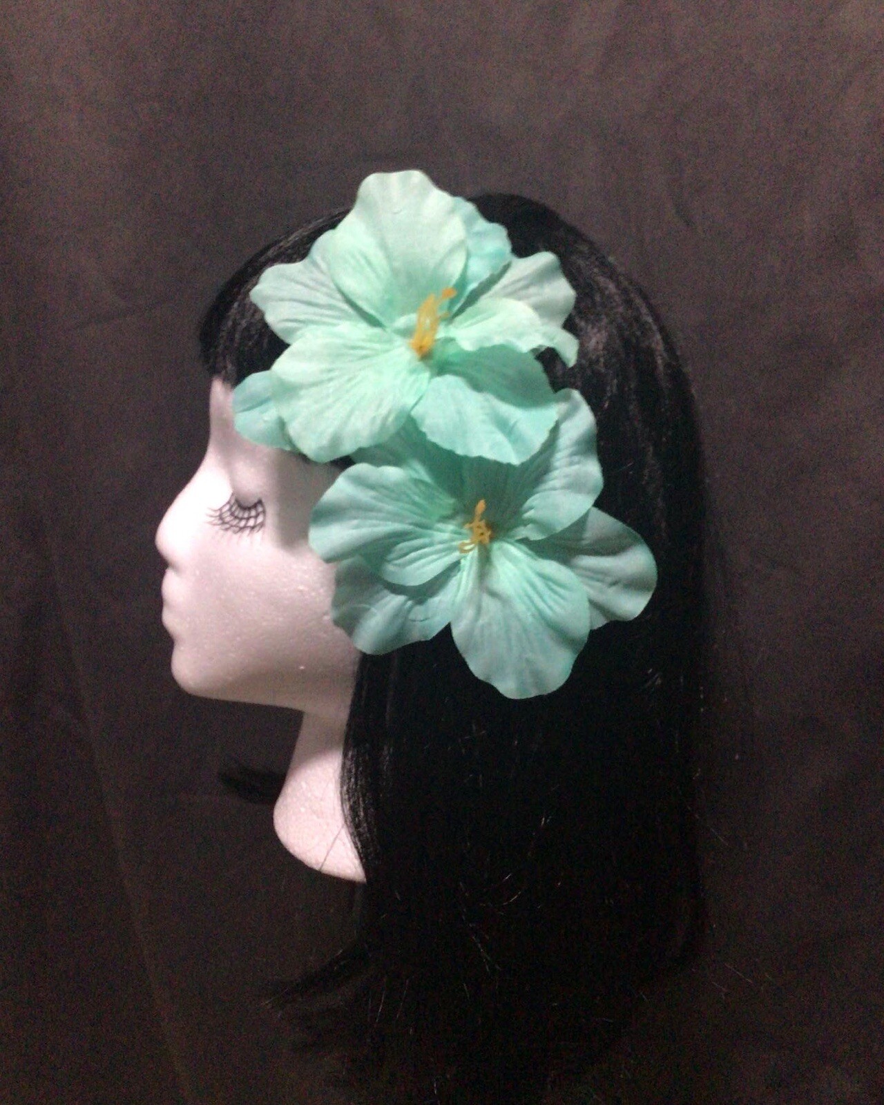 Hand Painted Teal Hibiscus Hair Clip Hawaiian Hair Etsy